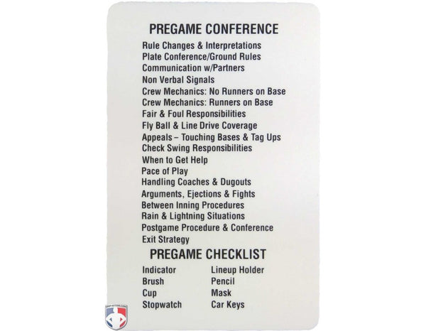 - Pregame checklist to make sure you take the field with everything you need